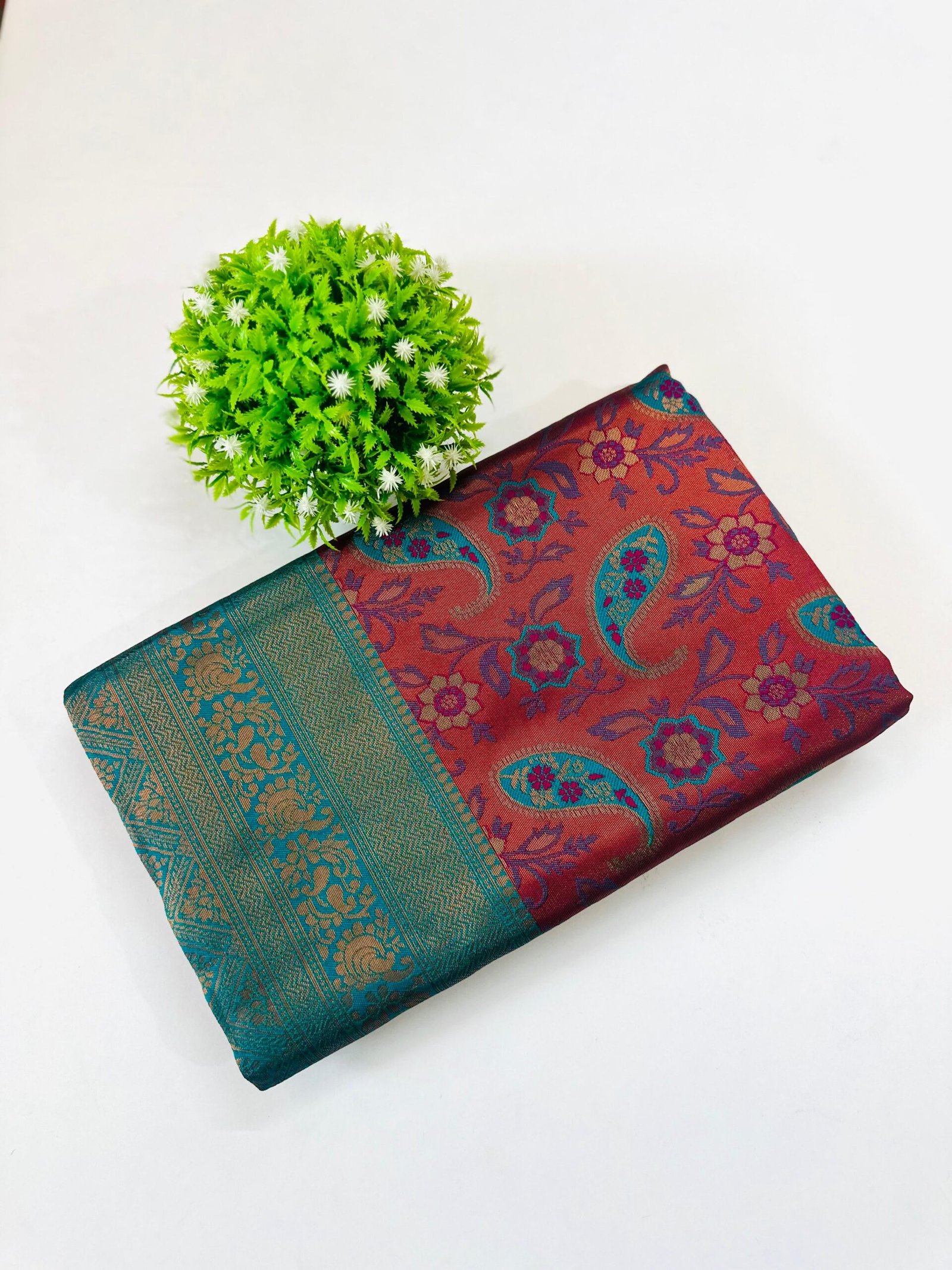 Style: Perfect for weddings, festivals, and grand parties, this saree’s Barfi Silk fabric and bold contrast weaving create an elegant and opulent look ideal for any major traditional occasion.