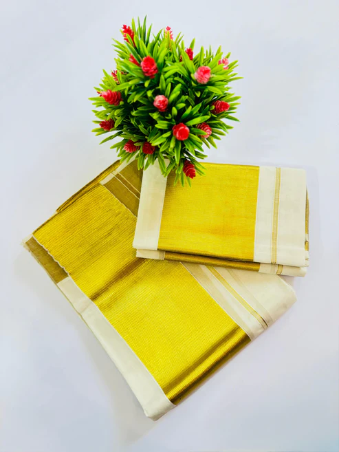 Celebrate tradition with elegance in this exquisite handloom single set mundu, designed for the discerning woman. Crafted from pure cotton, this traditional Kerala attire features a classic off-white body, accentuated by with 5″ gold border. The single mundu style is a cherished representation of Kerala’s cultural legacy, and the set completes the look with grace and authenticity.