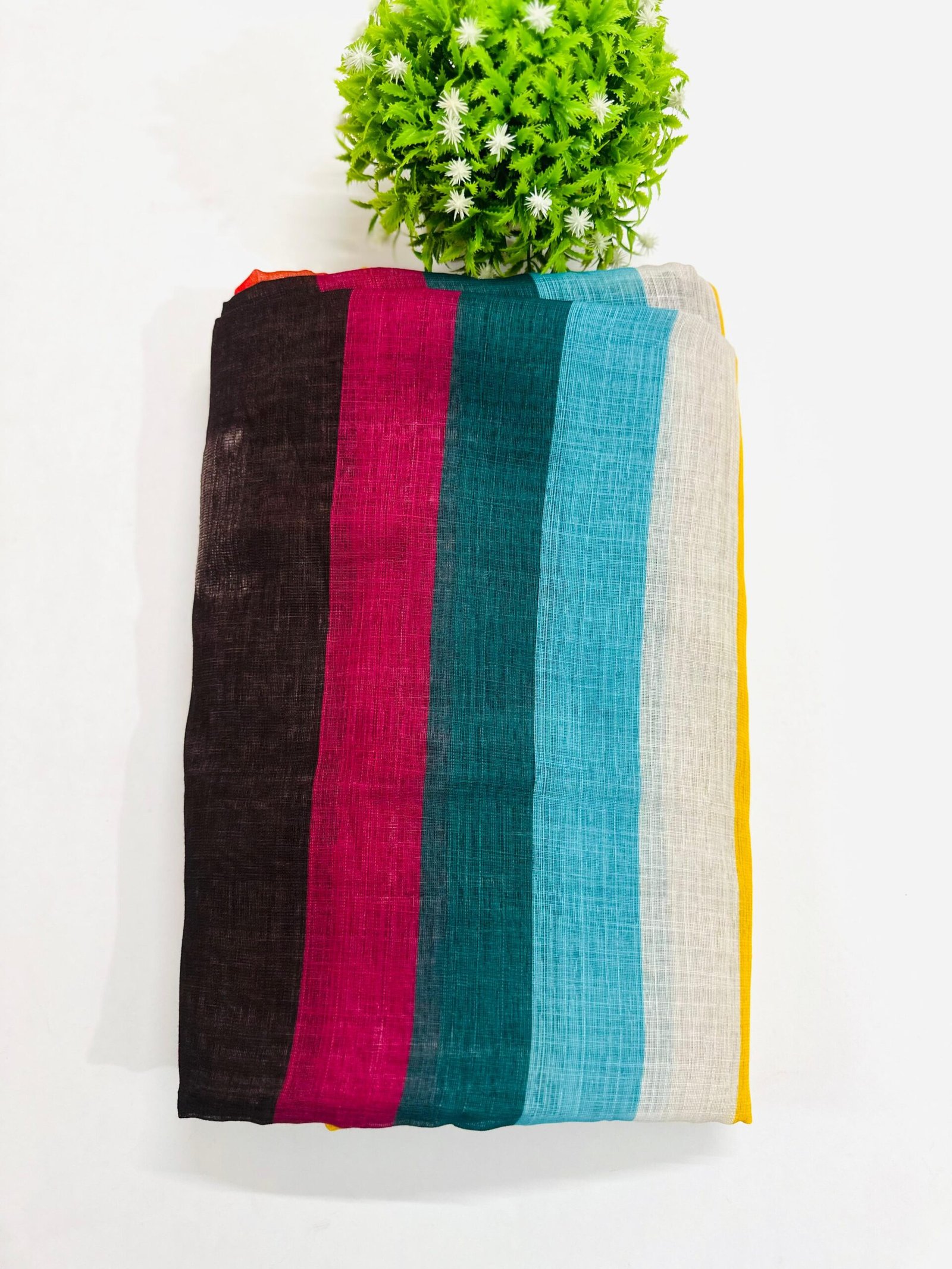 Rainbow Linen Sarees are a category of elegant, comfortable, and vibrant sarees made from linen fabric (often a pure or cotton blend). They are defined by the use of multiple bright colors, echoing the spectrum of a rainbow.