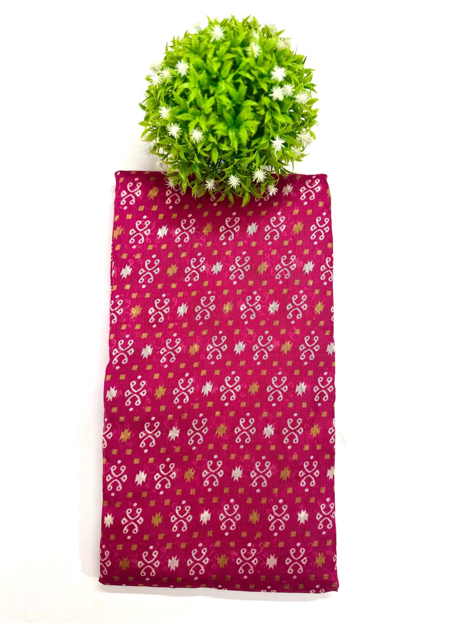 A saree crafted from a blend of cotton and silk fibers, offering a comfortable drape with a subtle sheen.
