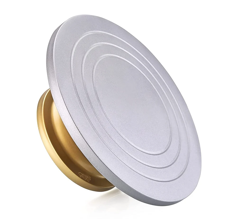 Cake Decorating & Icing Turntable | Signature Edition 12-Inch 360° Rotating Cake Stand for Baking & Serving | Plastic Cake Turntable with Silver Top & Golden Base | Professional Cake Decorating Stand