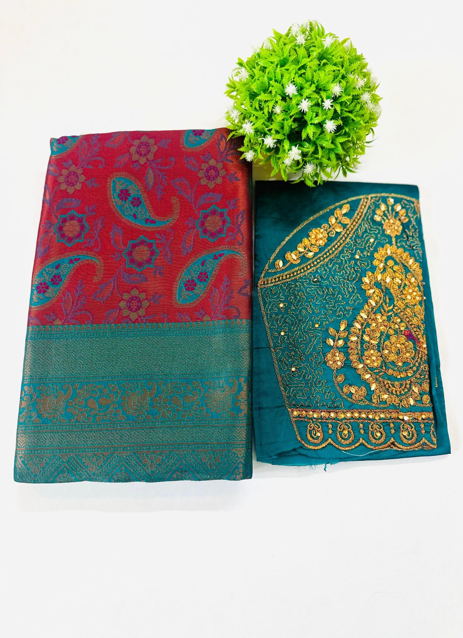 Style: Perfect for weddings, festivals, and grand parties, this saree’s Barfi Silk fabric and bold contrast weaving create an elegant and opulent look ideal for any major traditional occasion.